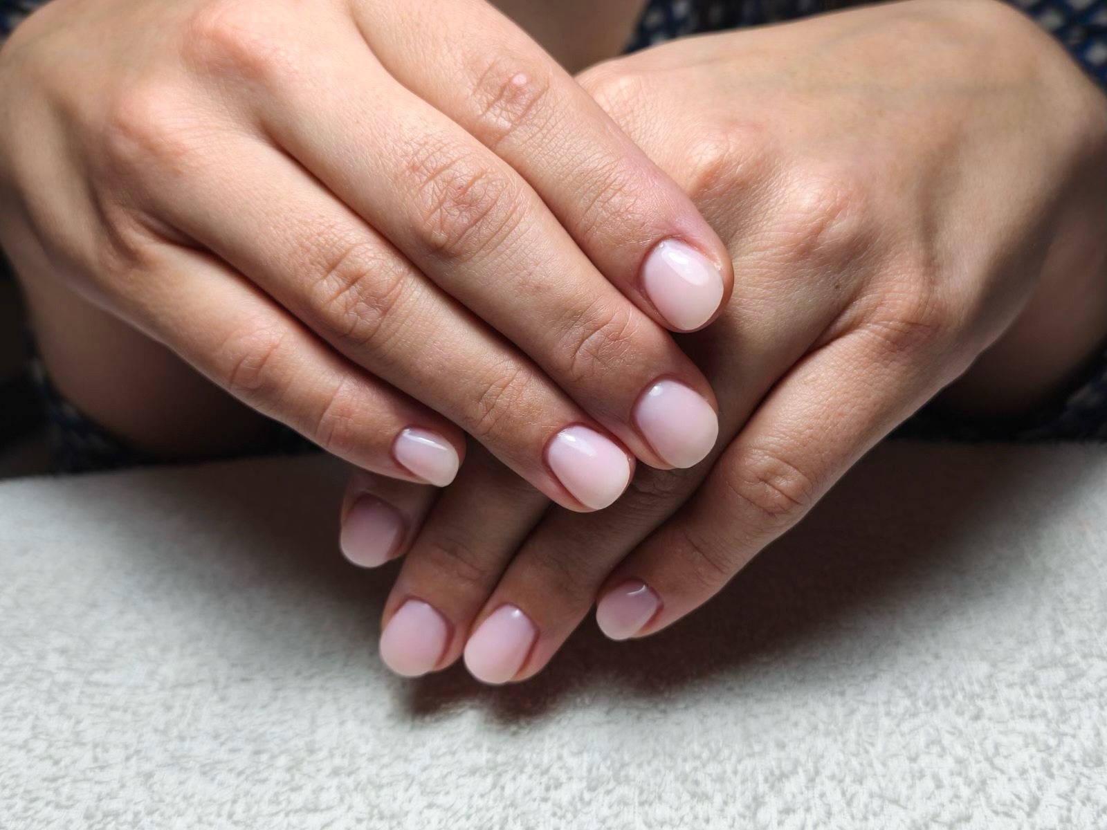 Klientka si vybrala jemně růžový odstín. Myslím, že s délkou a tvary se jí bude fungovat dobře. Ruce nyní vypadají mnohem lépe a je vidět, že se klientka cítí sebevědomější.